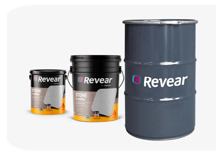 Revear Stone a Rodillo viene en envases de 5, 25 y 250 Kg.